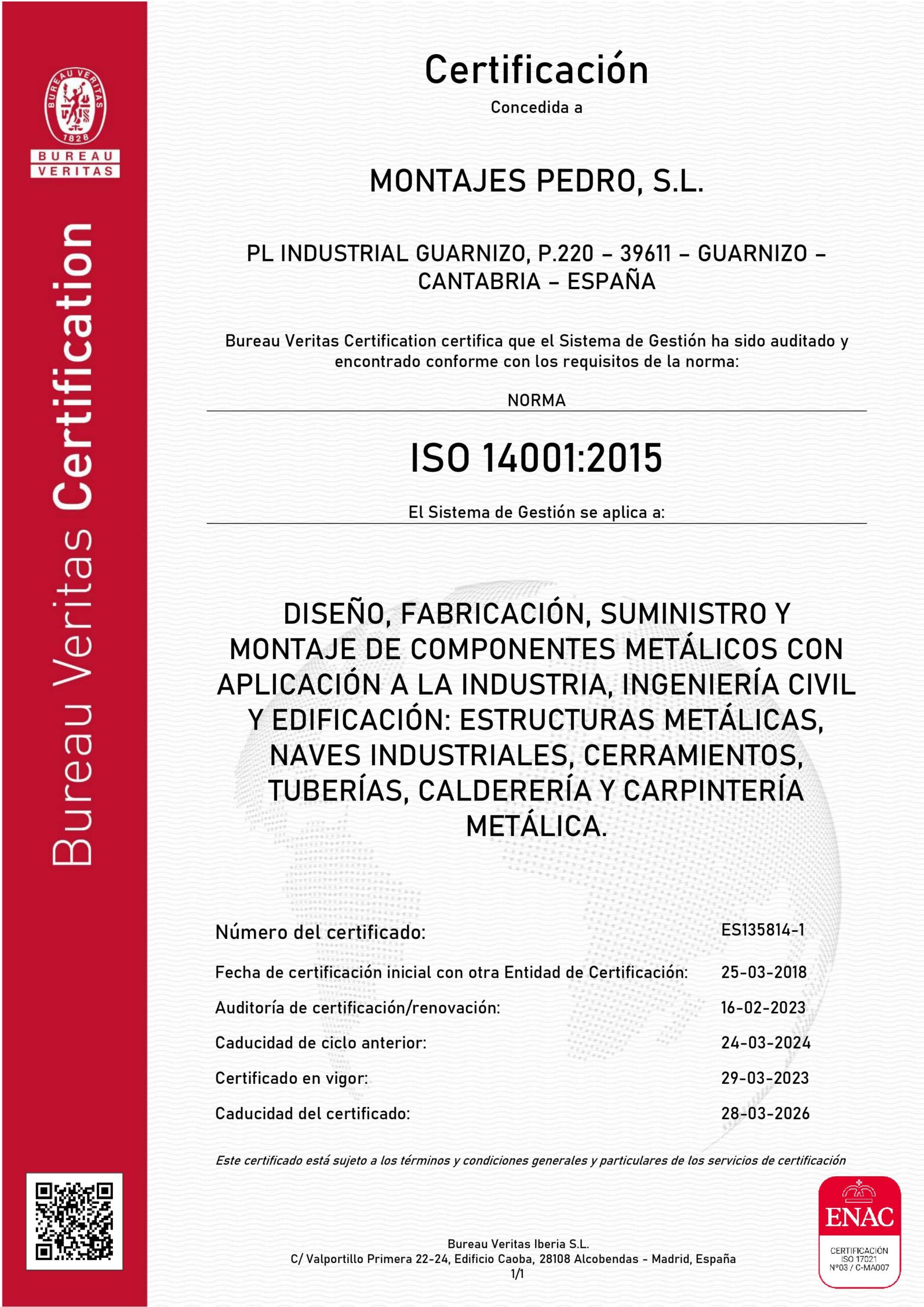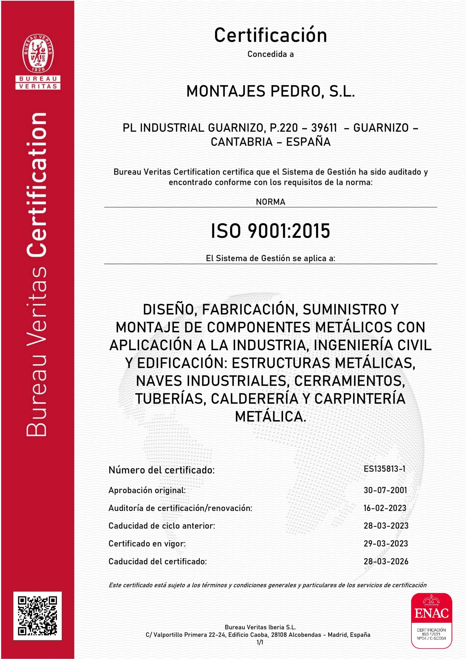 El sistema de gestión de la calidad de nuestra organización esta auditado y es conforme a las exigencias de las normas UNE EN ISO 9001:2015 ; UNE EN ISO 3834 ; ISO 14001:2015 y UNE EN 1090 para marcado CE de estructuras metálicas.